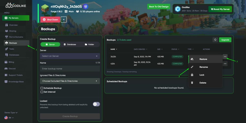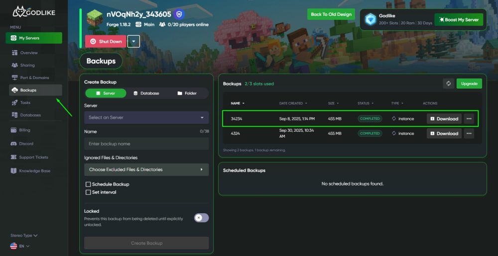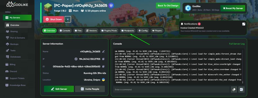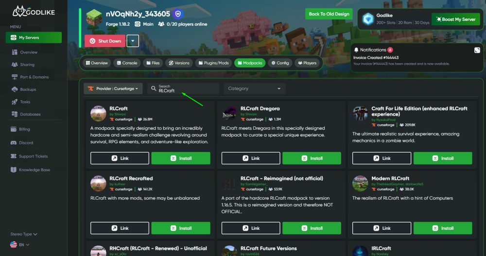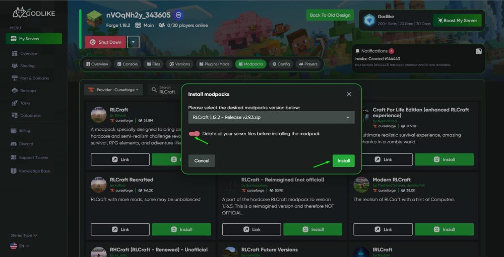 Installare un modpack è facile! Il pannello farà tutto per voi: sceglierà il core giusto, configurerà le mod e preparerà il vostro server al lancio. Funziona per: Forge, Fabric, CurseForge e Modrinth.