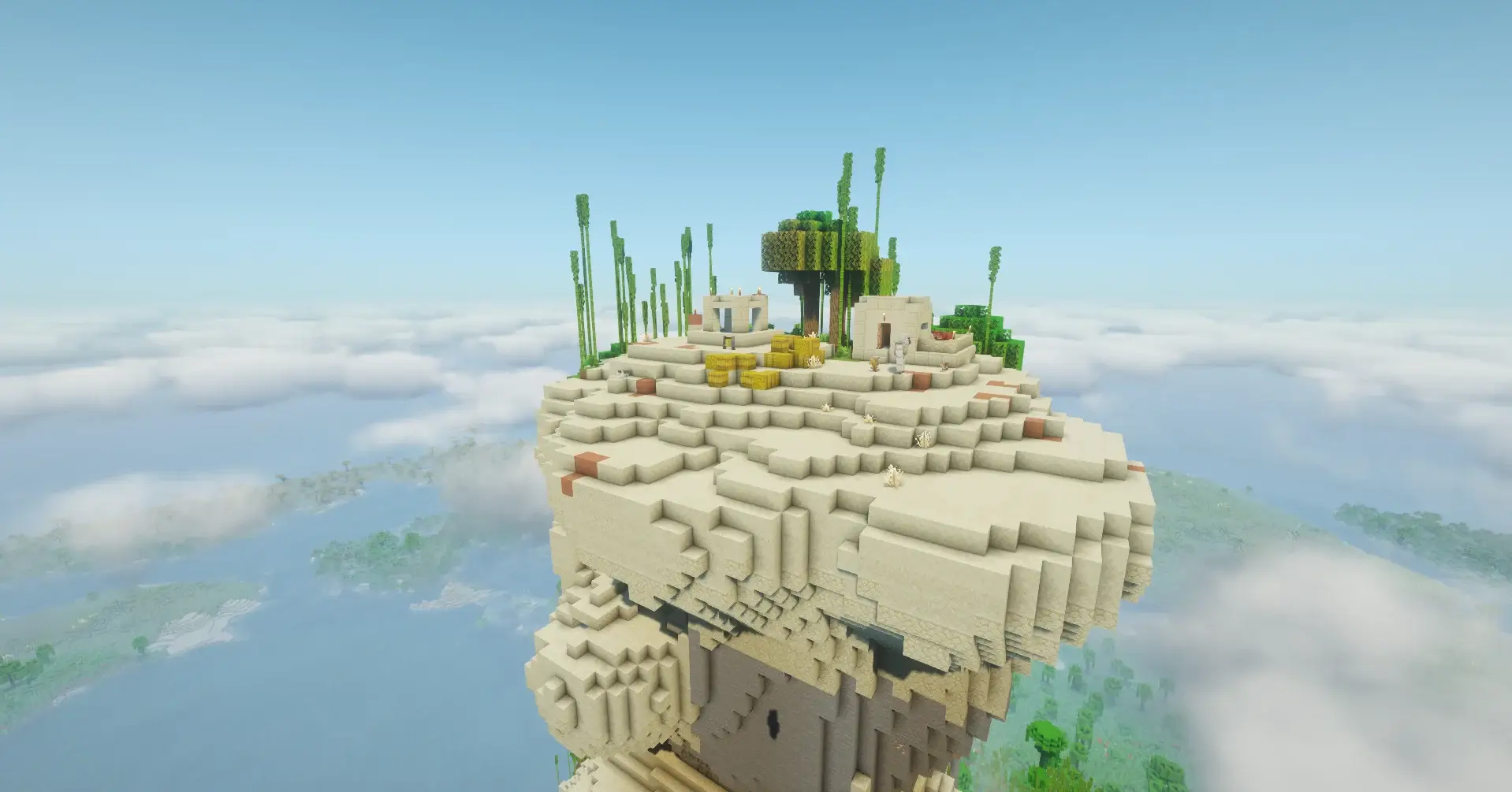Floating desert and bamboo jungle village