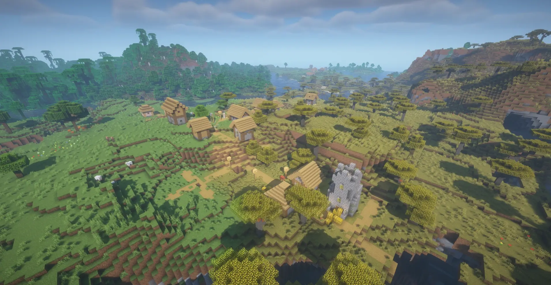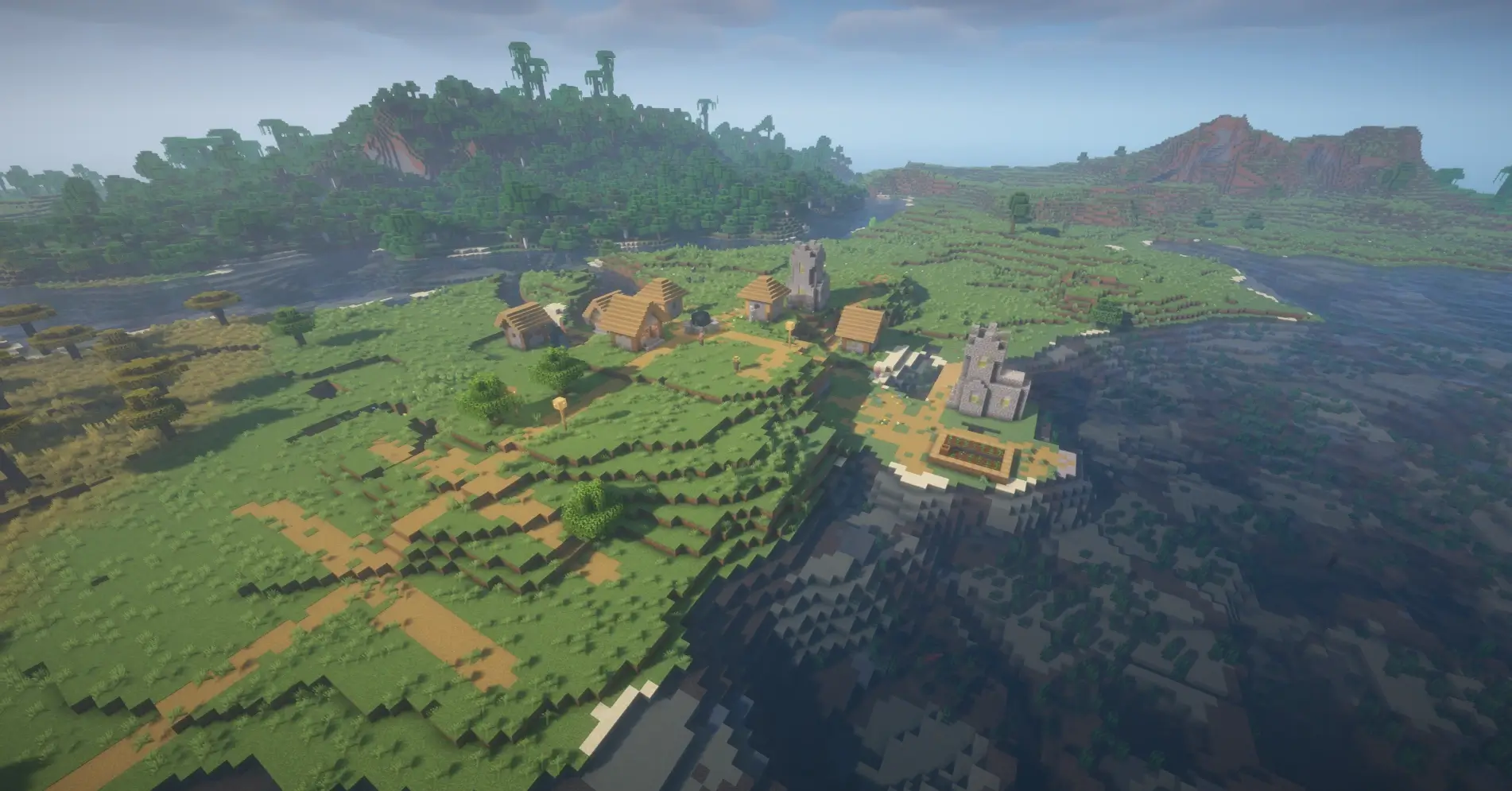 A rare Minecraft seed with four villages near spawn for an easy and resource-rich survival start.