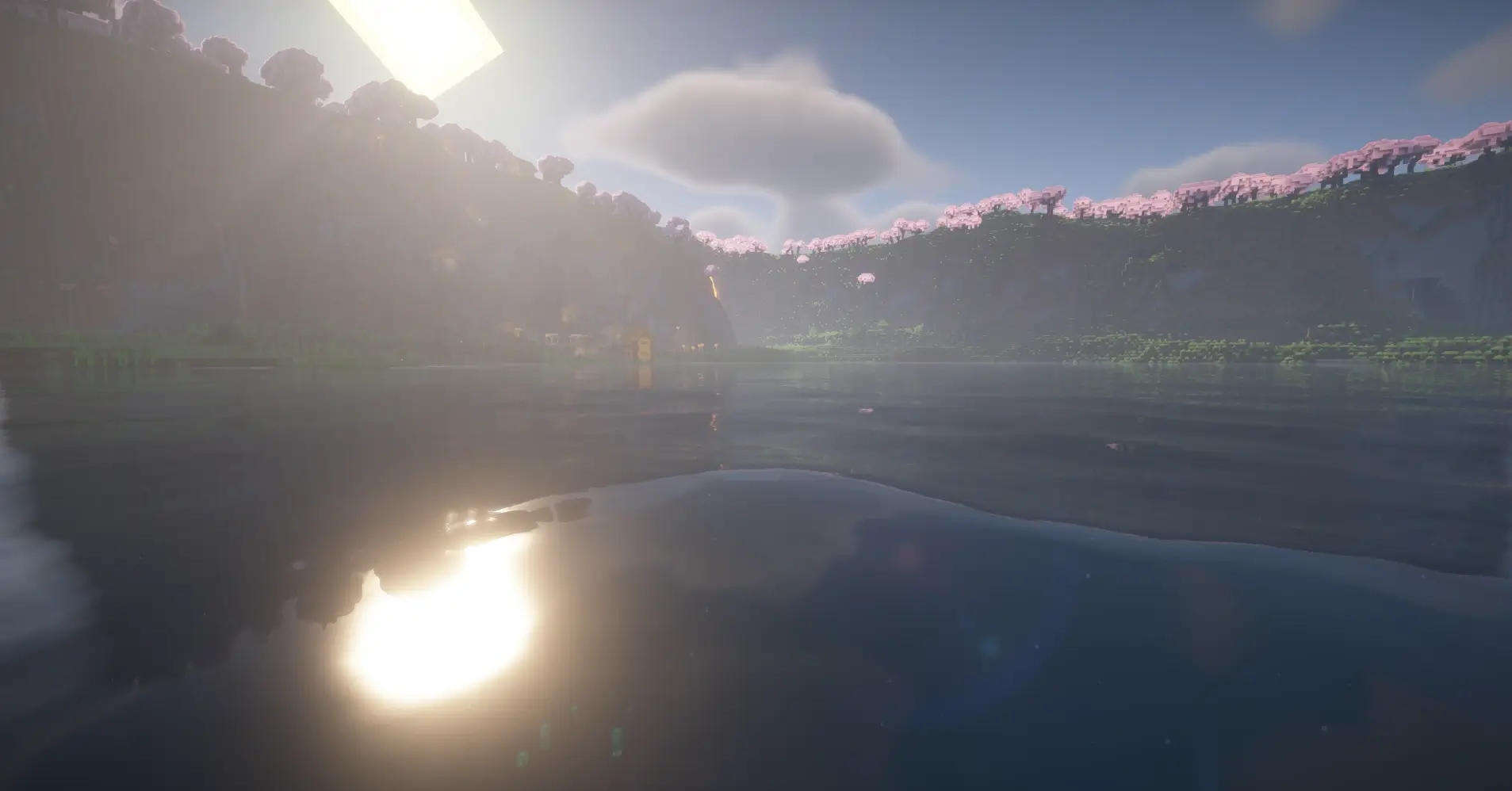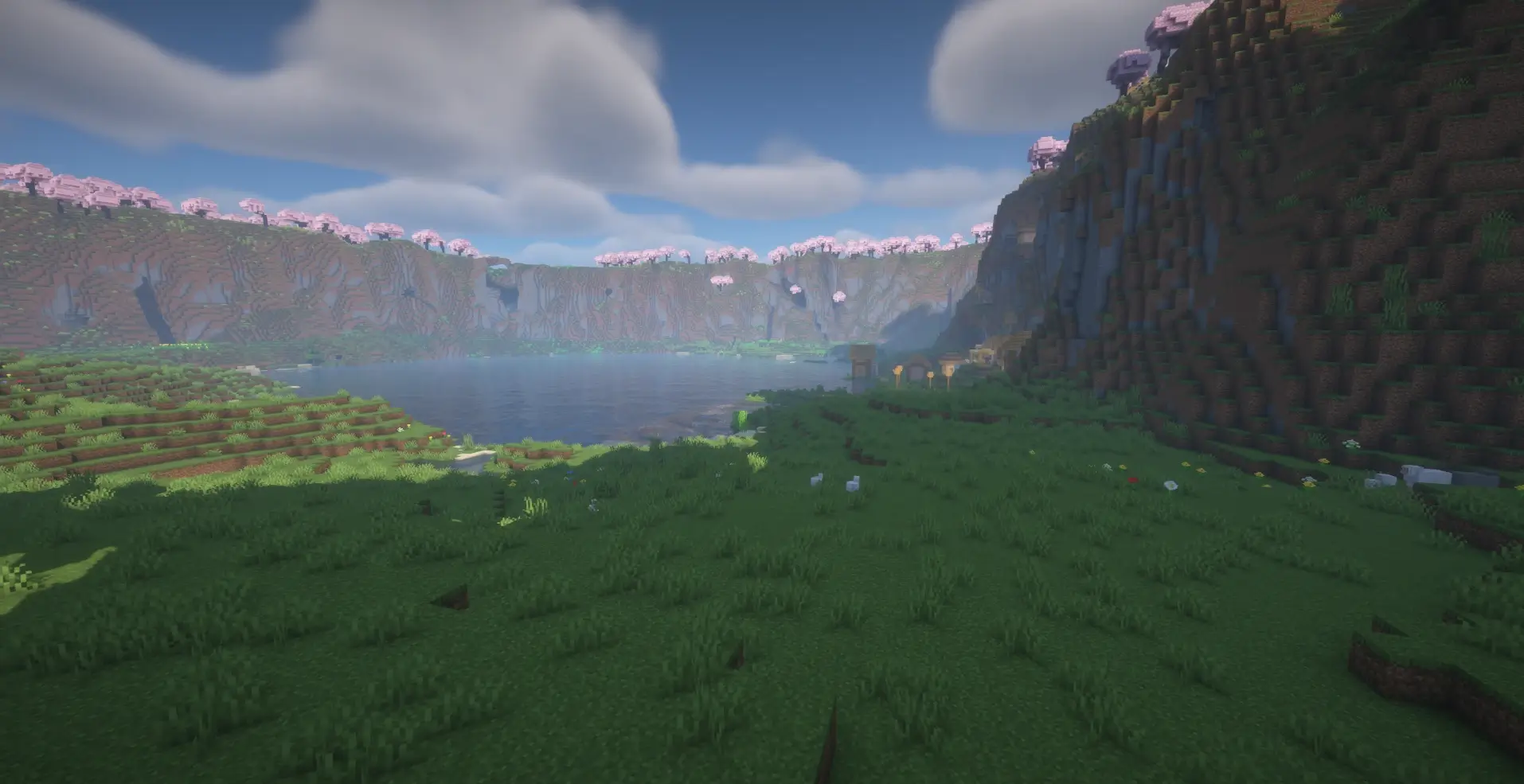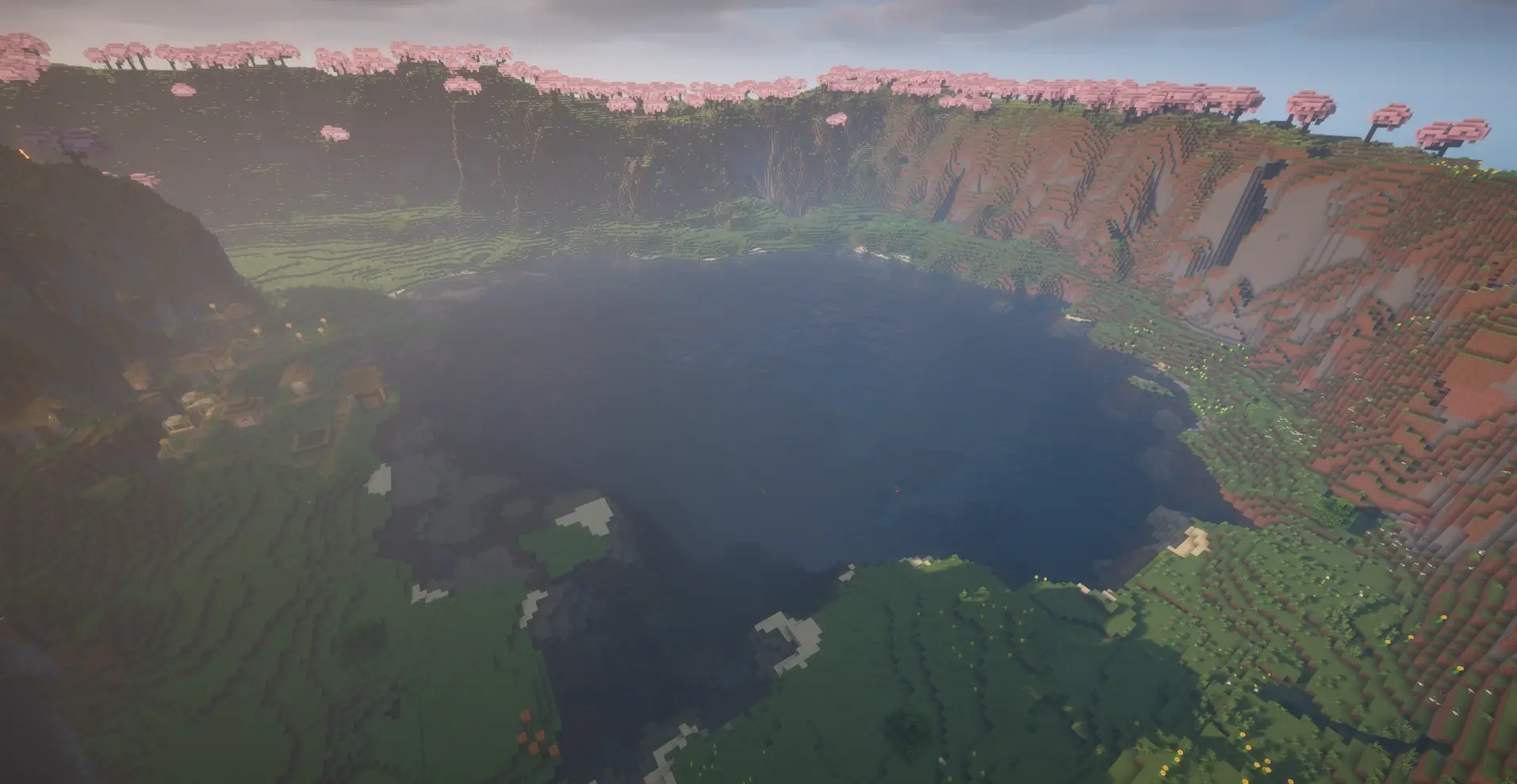 Minecraft cherry grove lake seed with village — perfect for survival, scenic builds and peaceful gameplay.