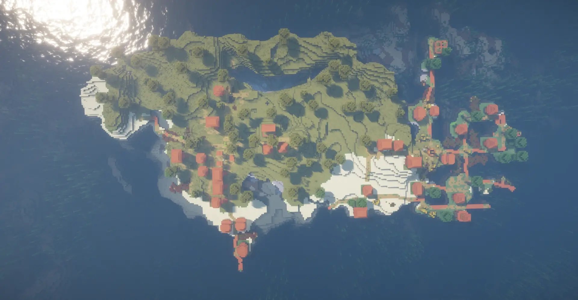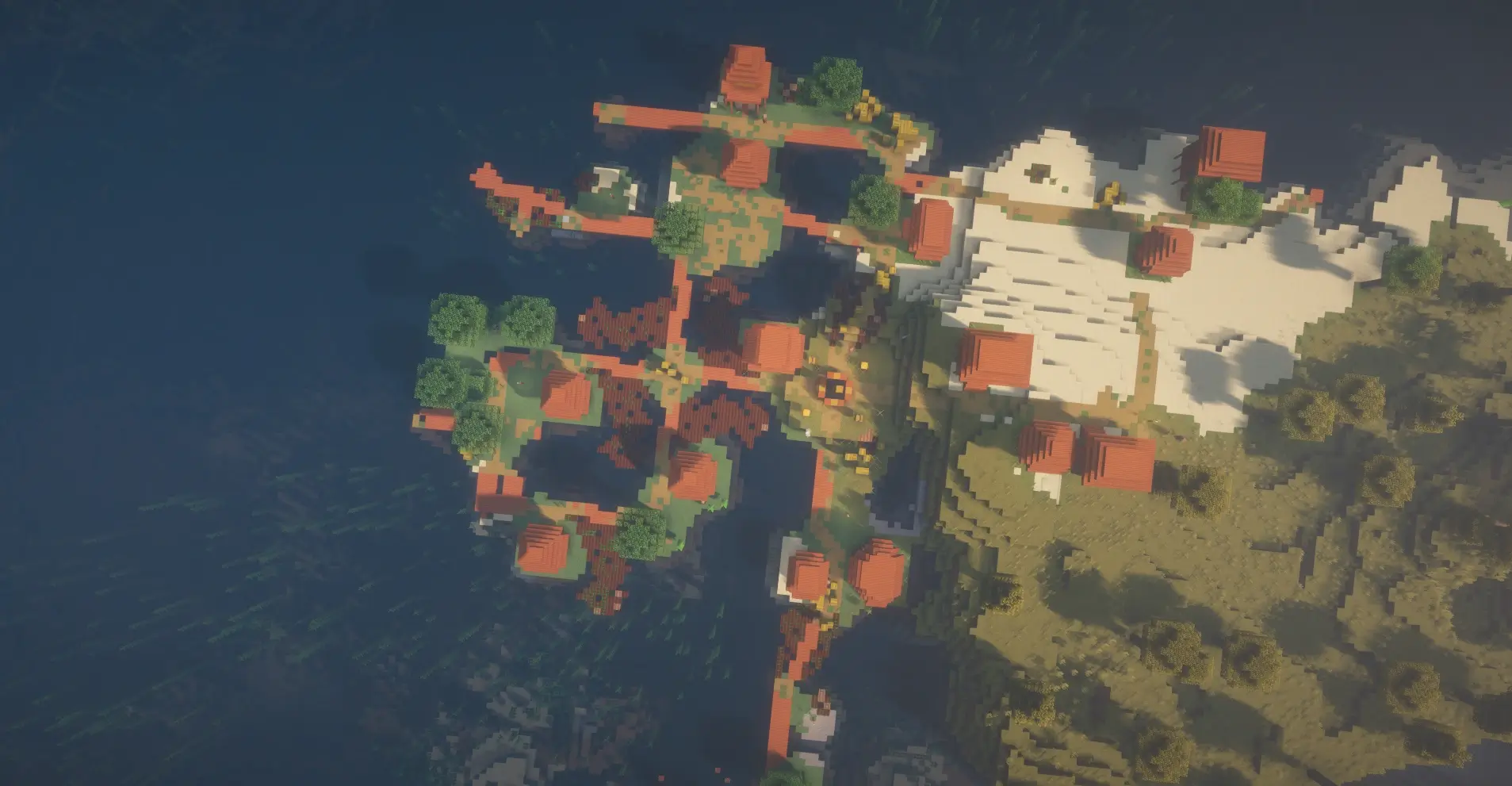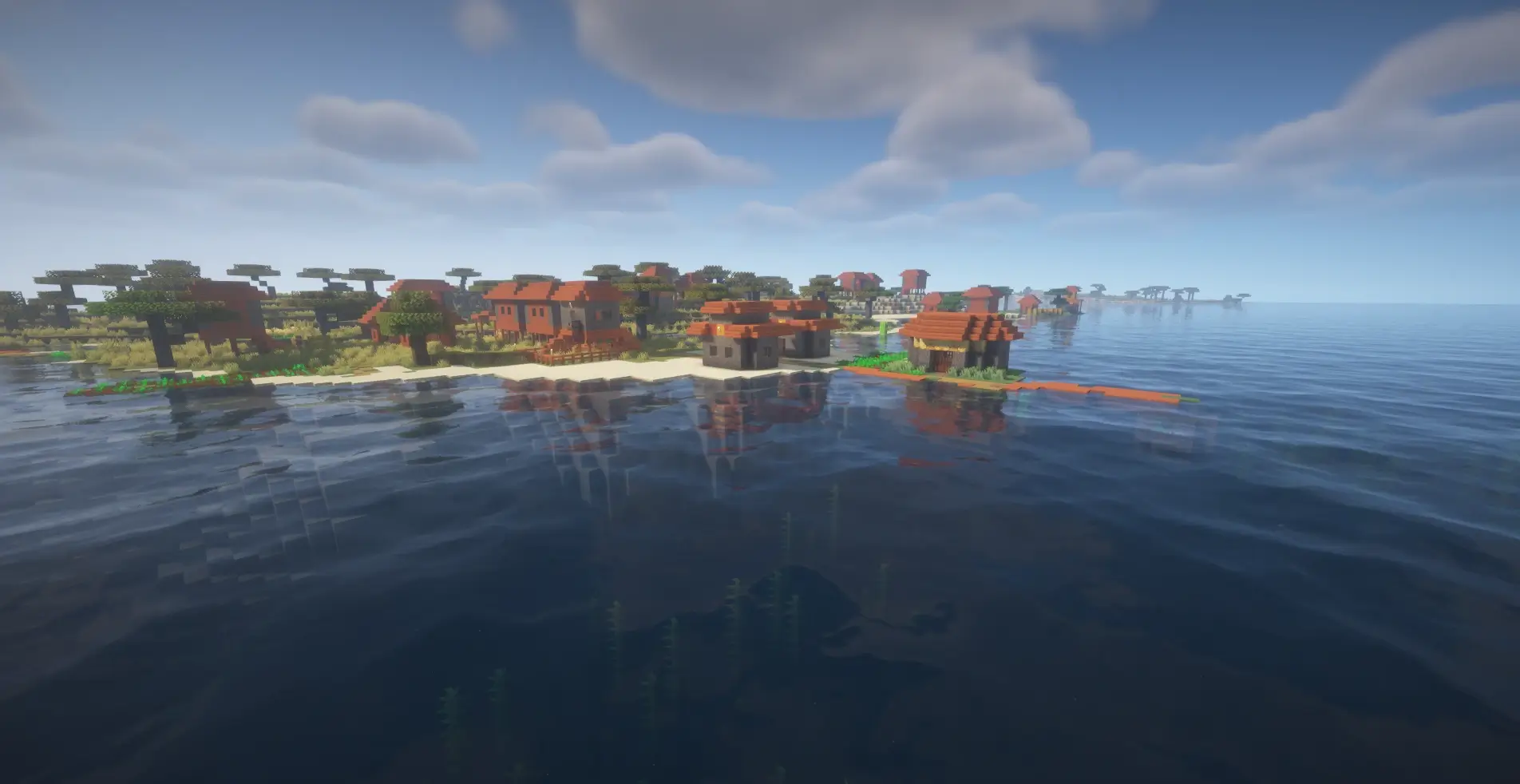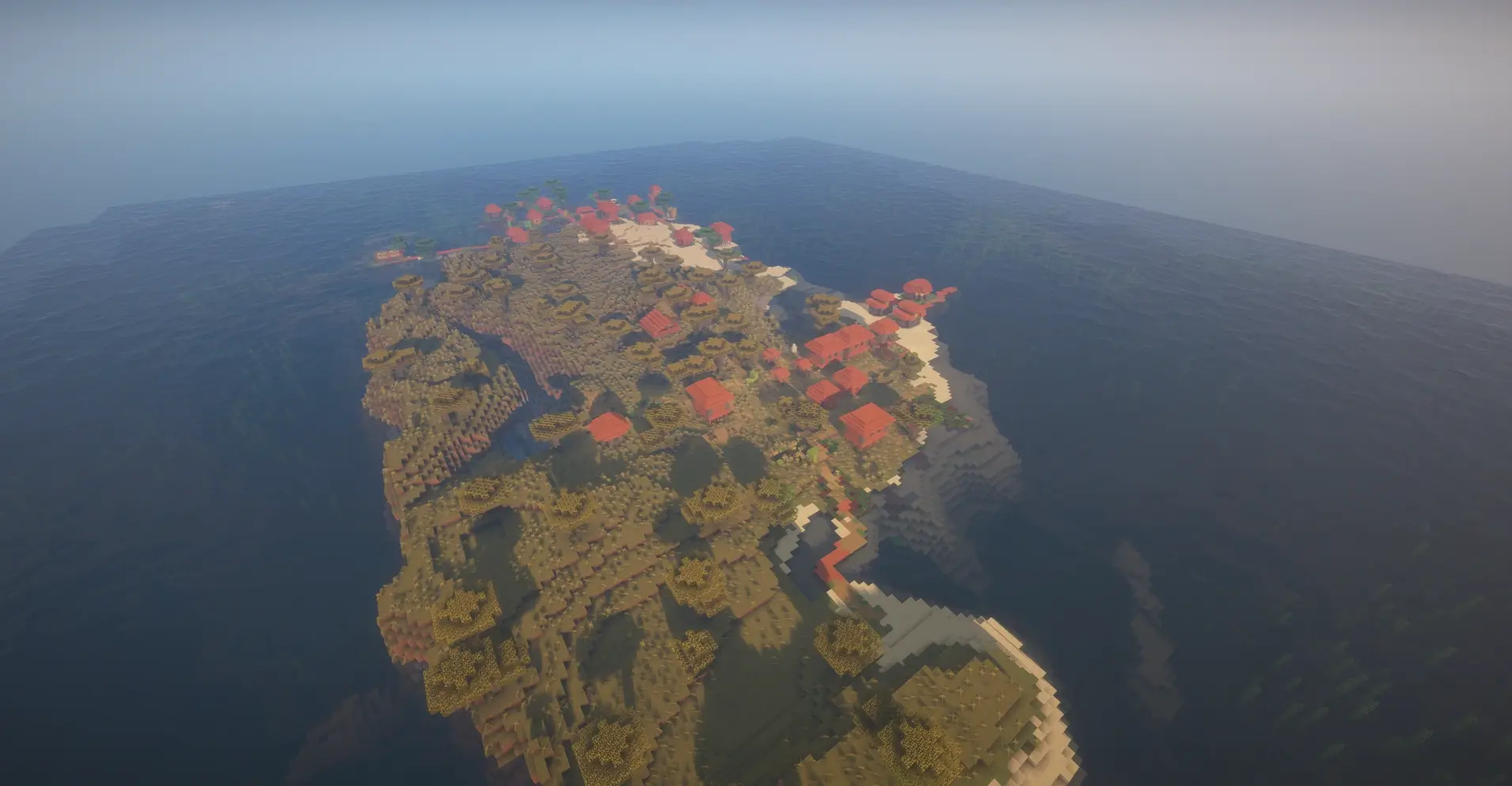 Minecraft seed with 2 savanna villages on an island, great for survival, trading, and unique ocean base building.
