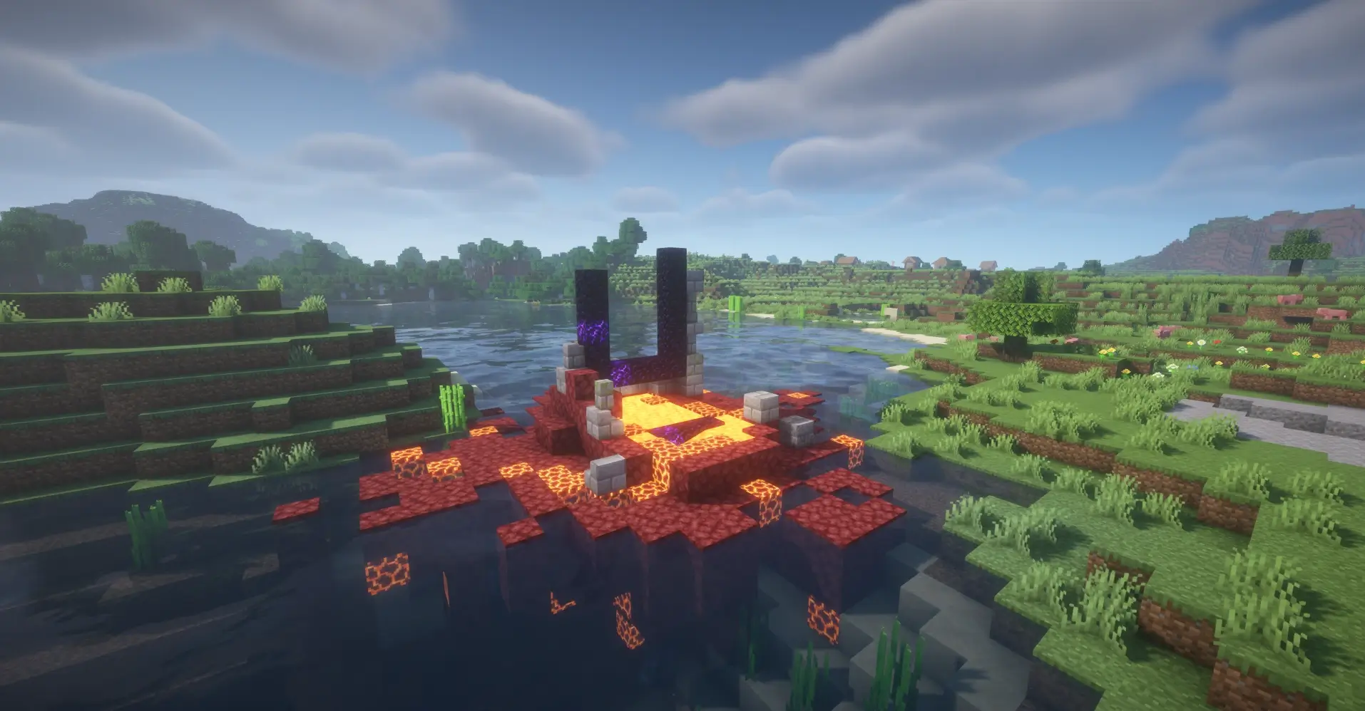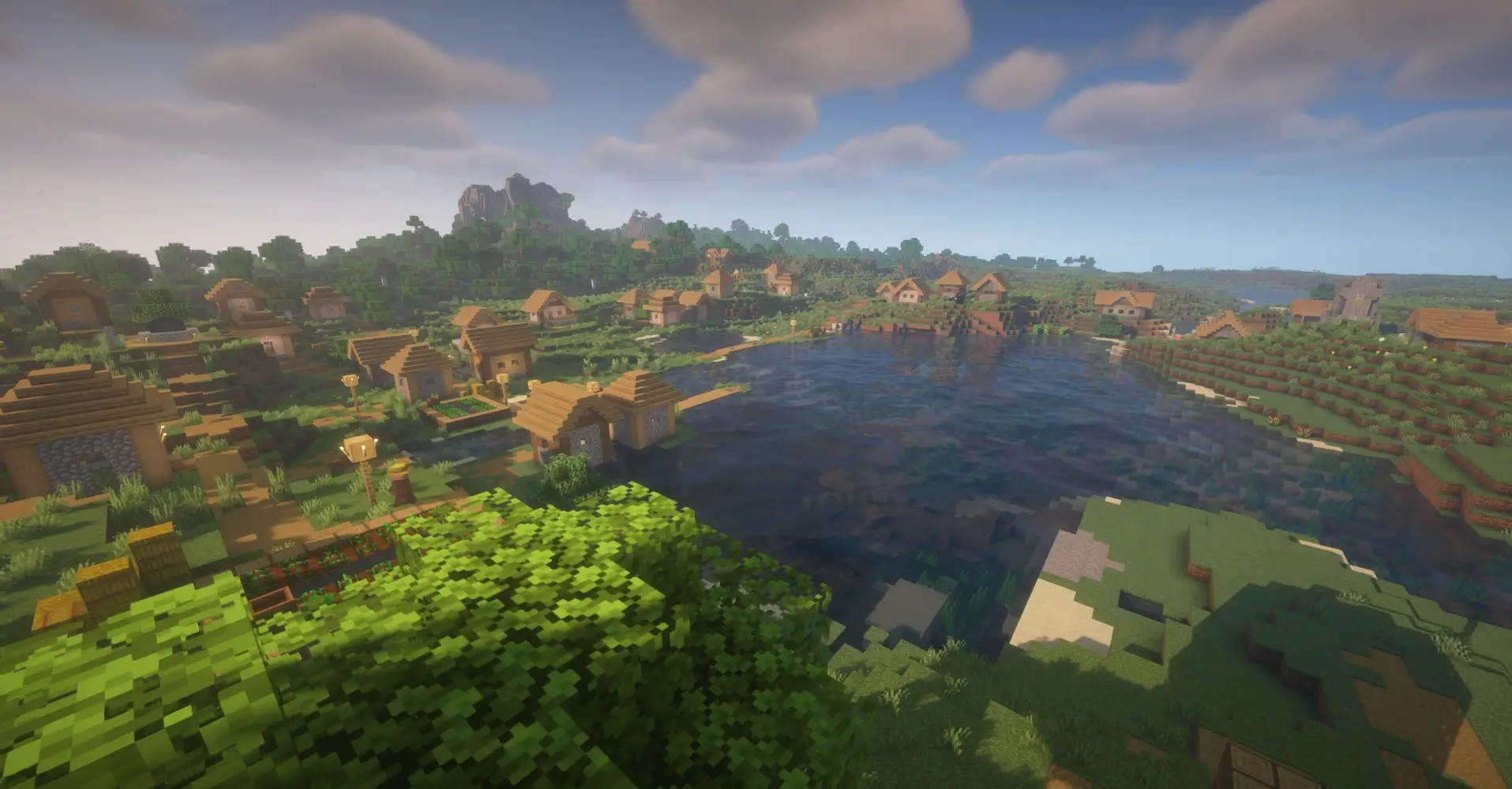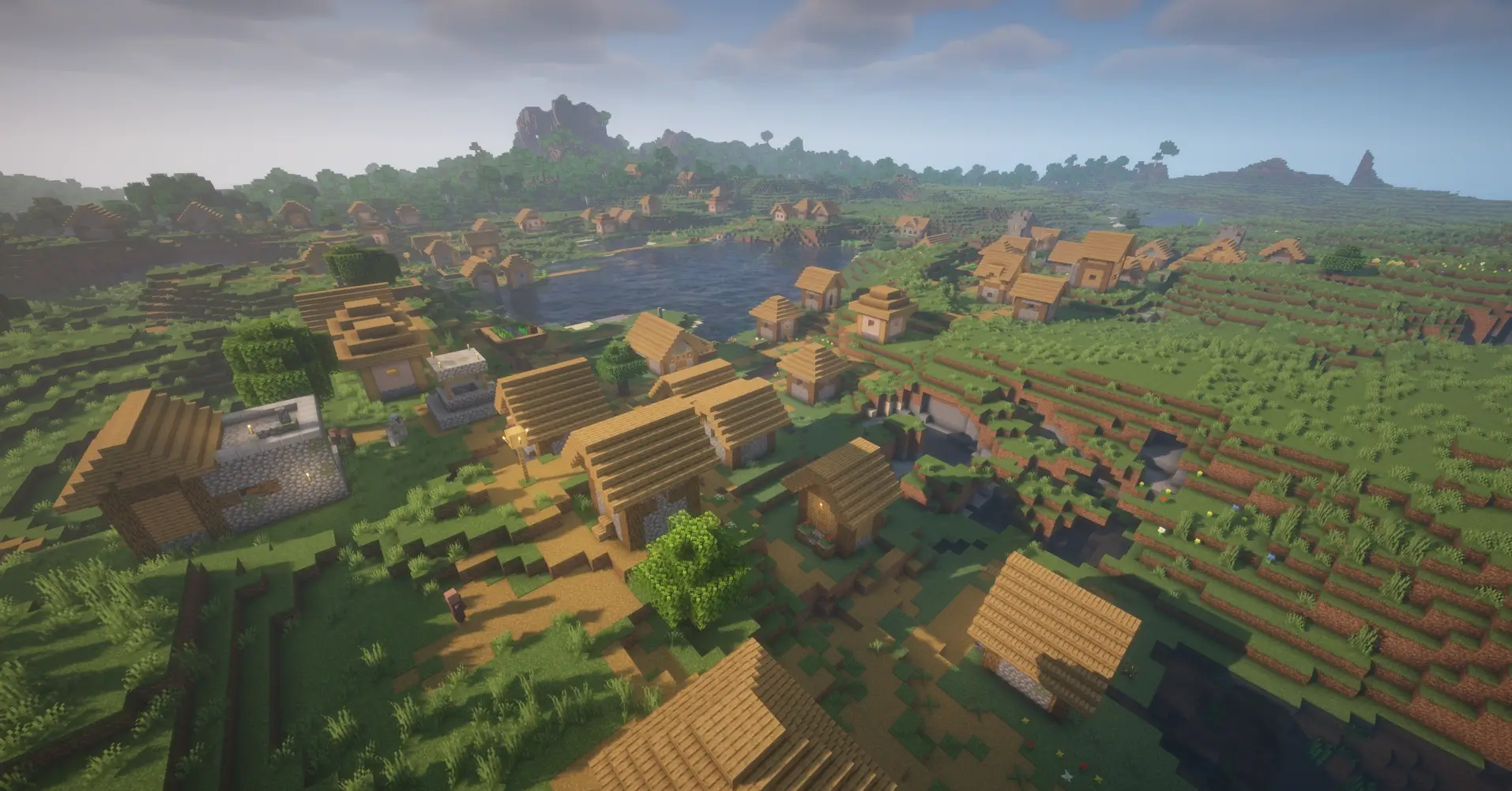 Four villages generated close together and almost connected. Huge amount of loot, villagers, and perfect location for building a mega survival base.