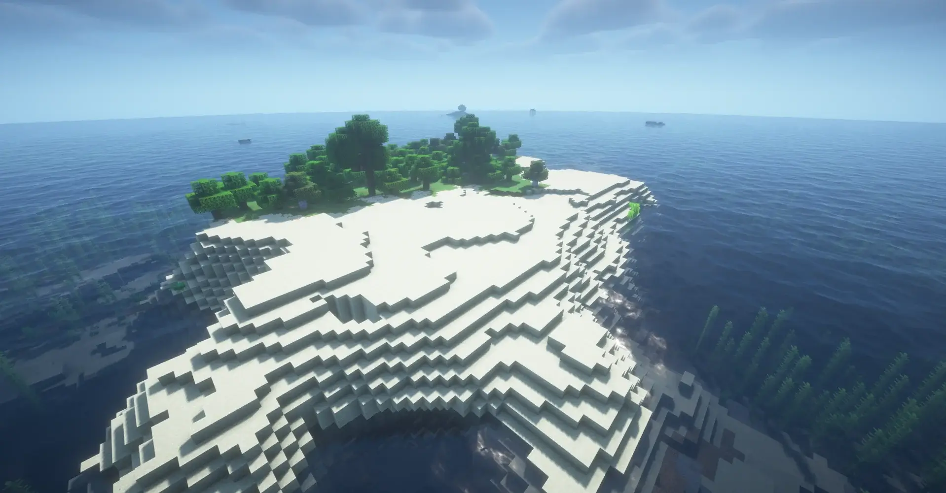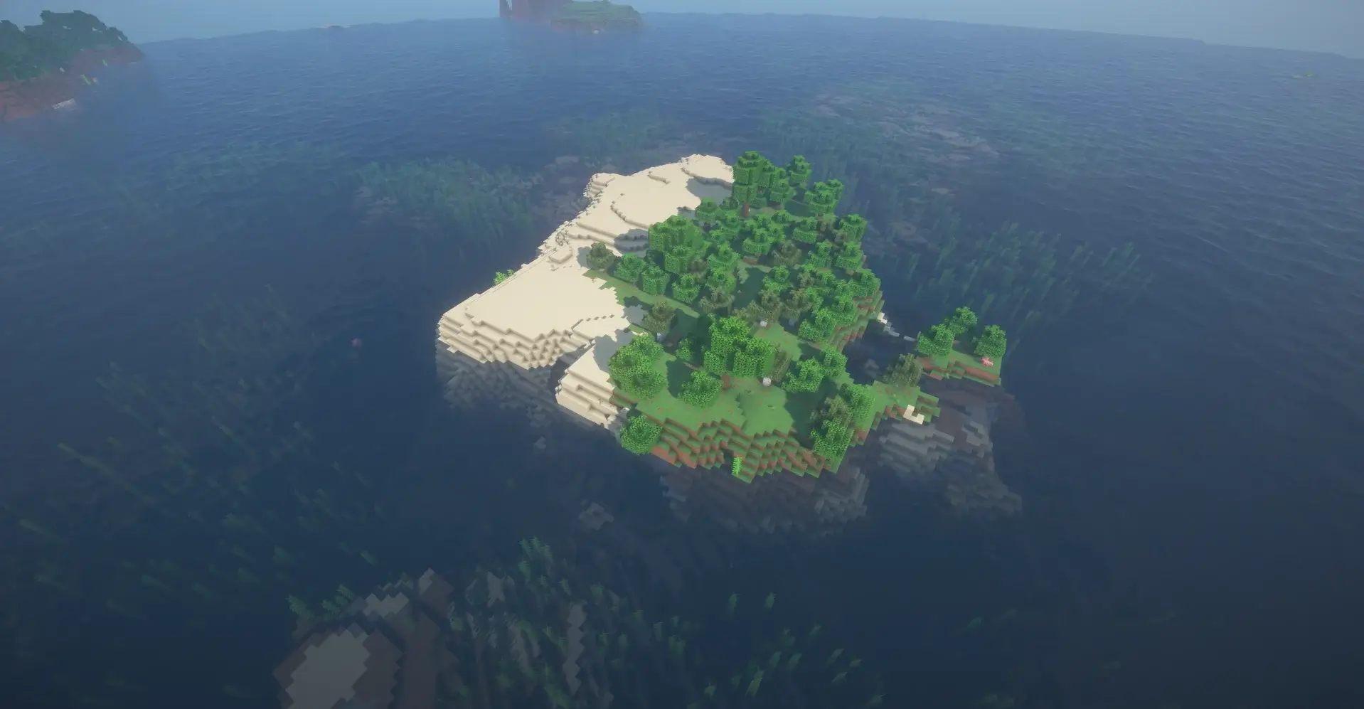 Small forest island with a sandy beach surrounded by a vast ocean — perfect for a classic survival start.