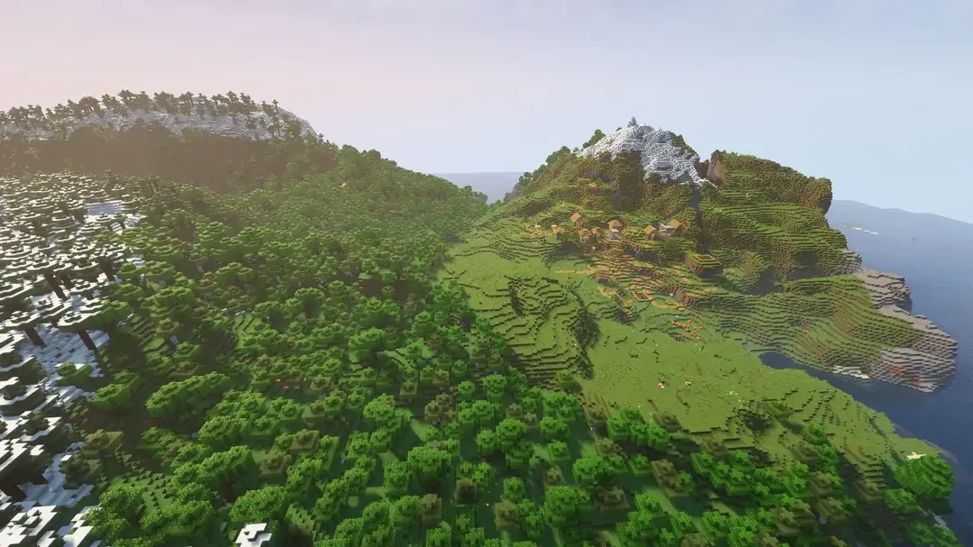 Experience an epic start on a massive mountainous island where a rare Woodland Mansion stands tall alongside a coastal village. This unique seed offers a dramatic landscape of soaring cliffs and dense forests, providing the perfect foundation for a legendary island fortress.
