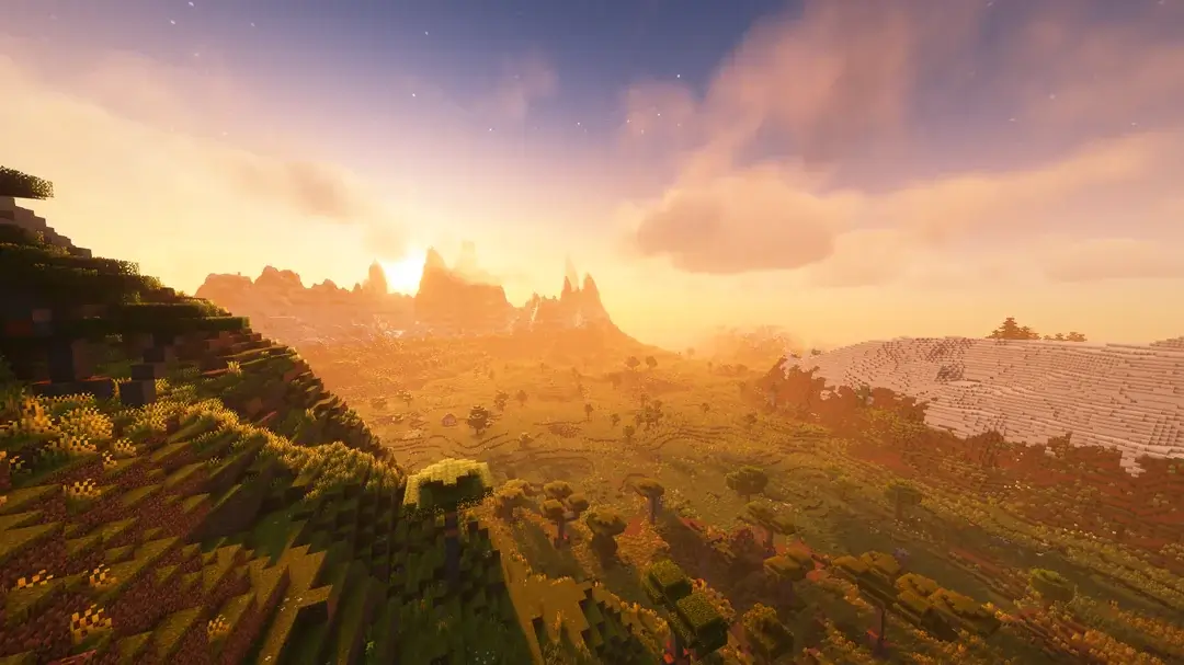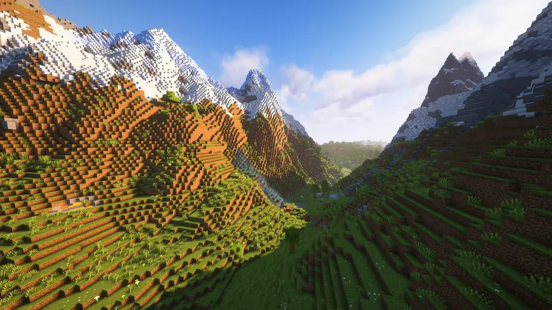 A beautiful terrain with snowy mountains, valleys, a mountain ring and villages. Perfect for starting your 2-week Minecraft phase.