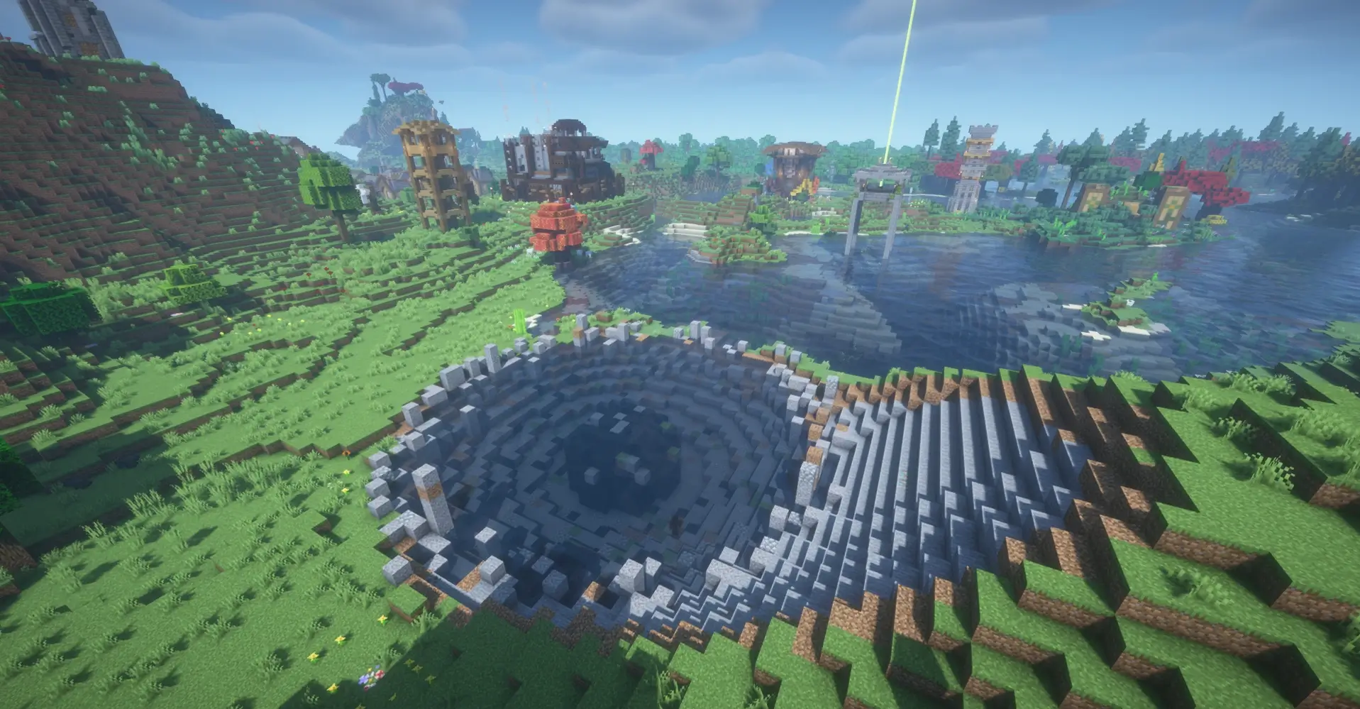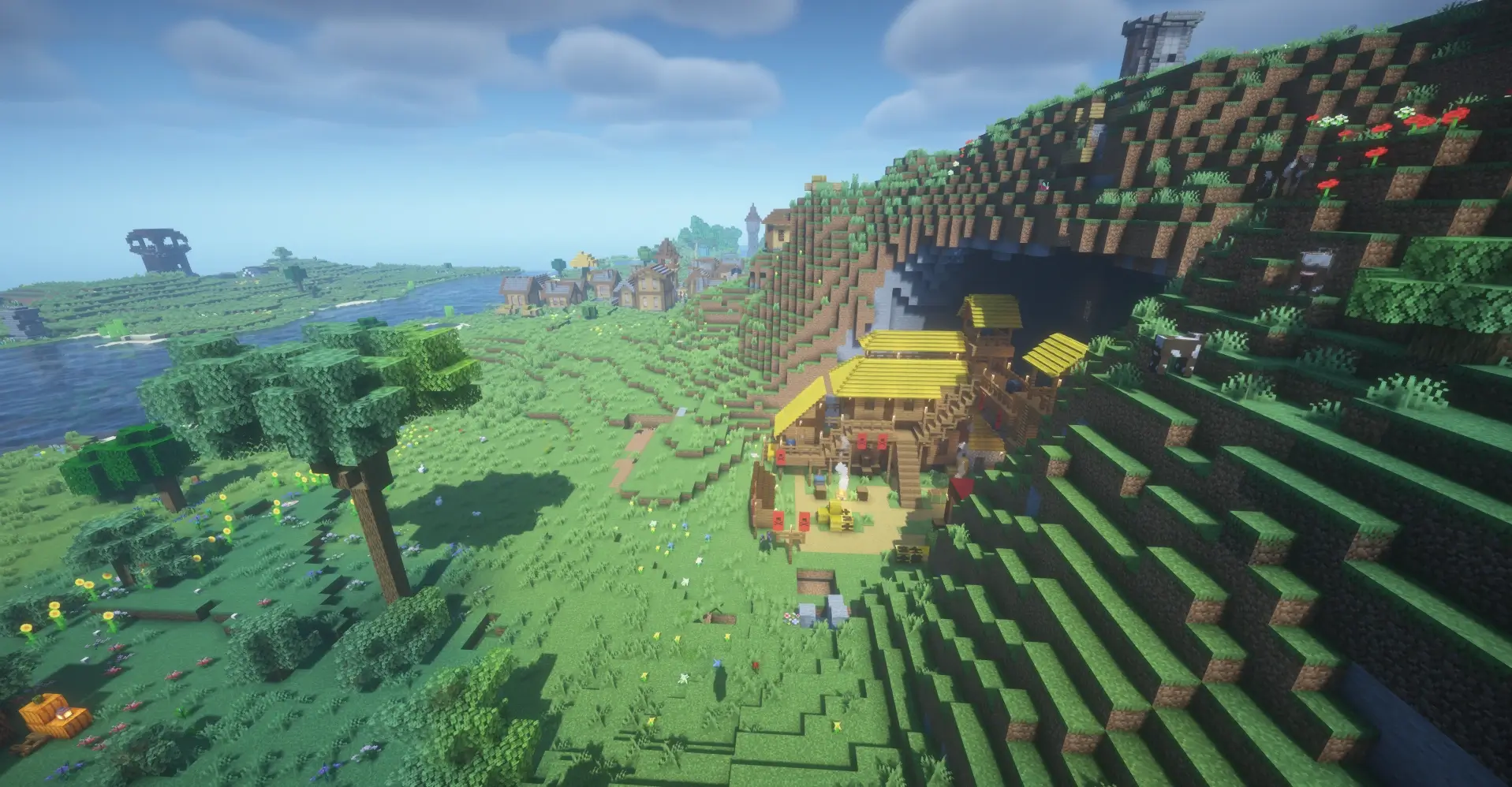 This seed spawns you near a large village surrounded by multiple towers, making it a perfect spot for quick early-game looting. The area has a very high structure density, so you can gather resources and gear fast. A nearby ravine to the south and west also provides easy access to caves and early mining.
