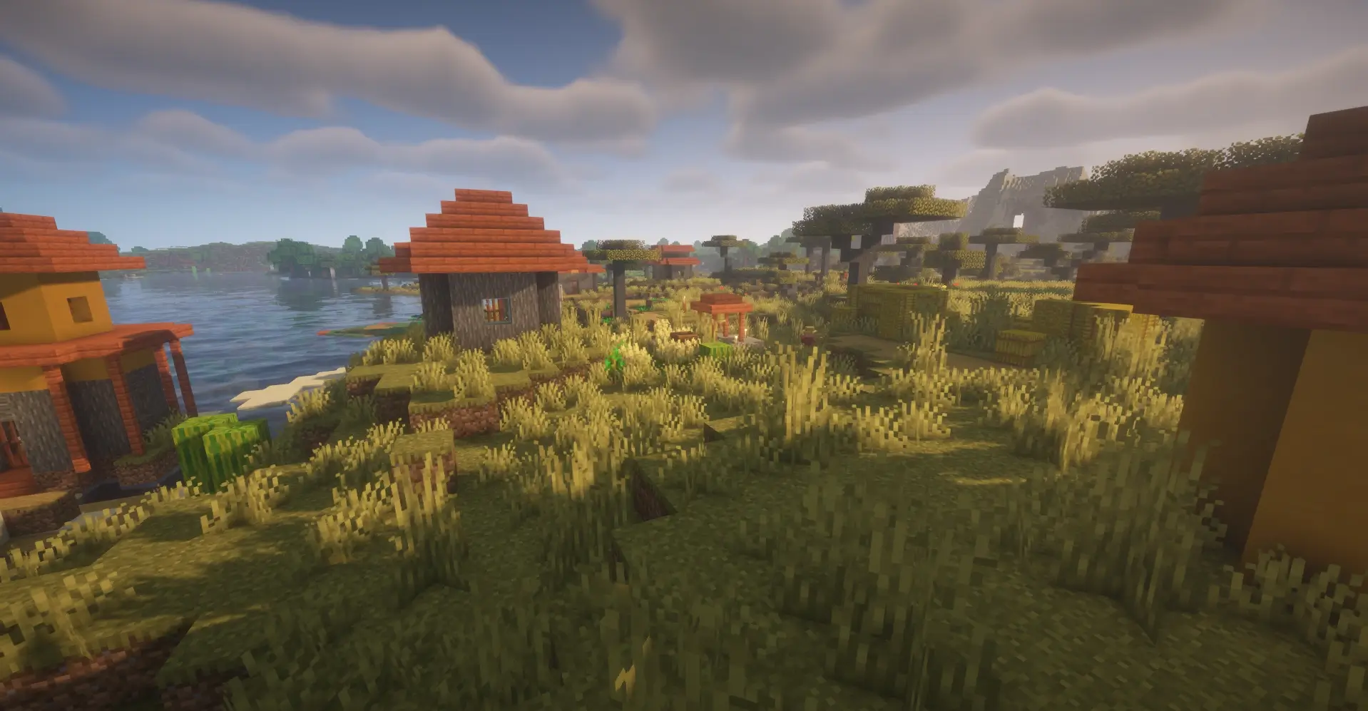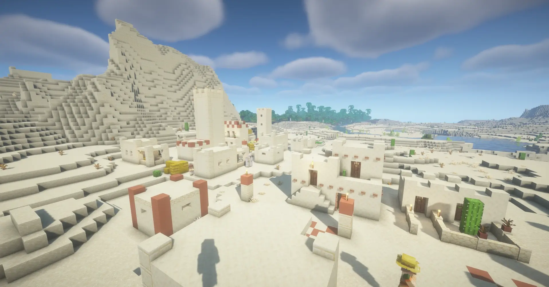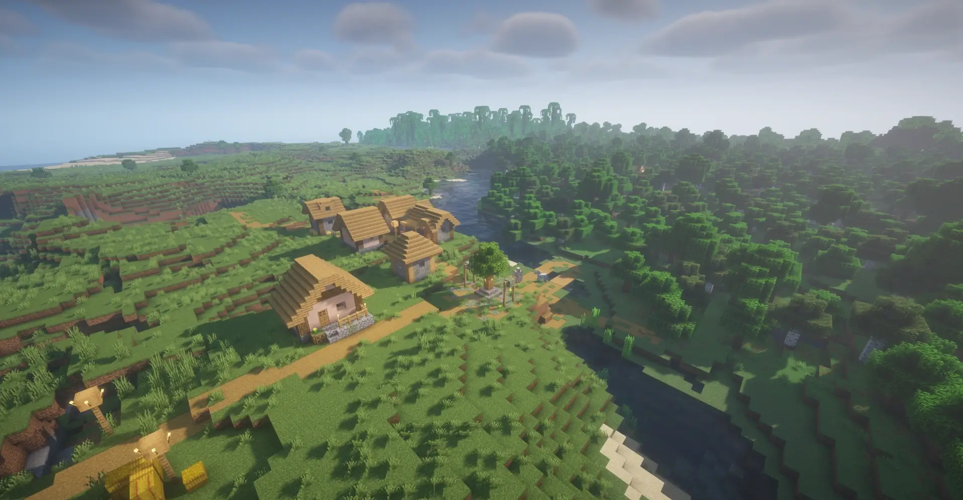 This unique seed features three different village types located close to each other. You can find a Savanna village near the water, a Plains village beside a river and forest, and a Desert village surrounded by sand dunes and mountains. With three biomes and villages nearby, it’s a perfect sфeed for trading, exploring, and building a central base between them