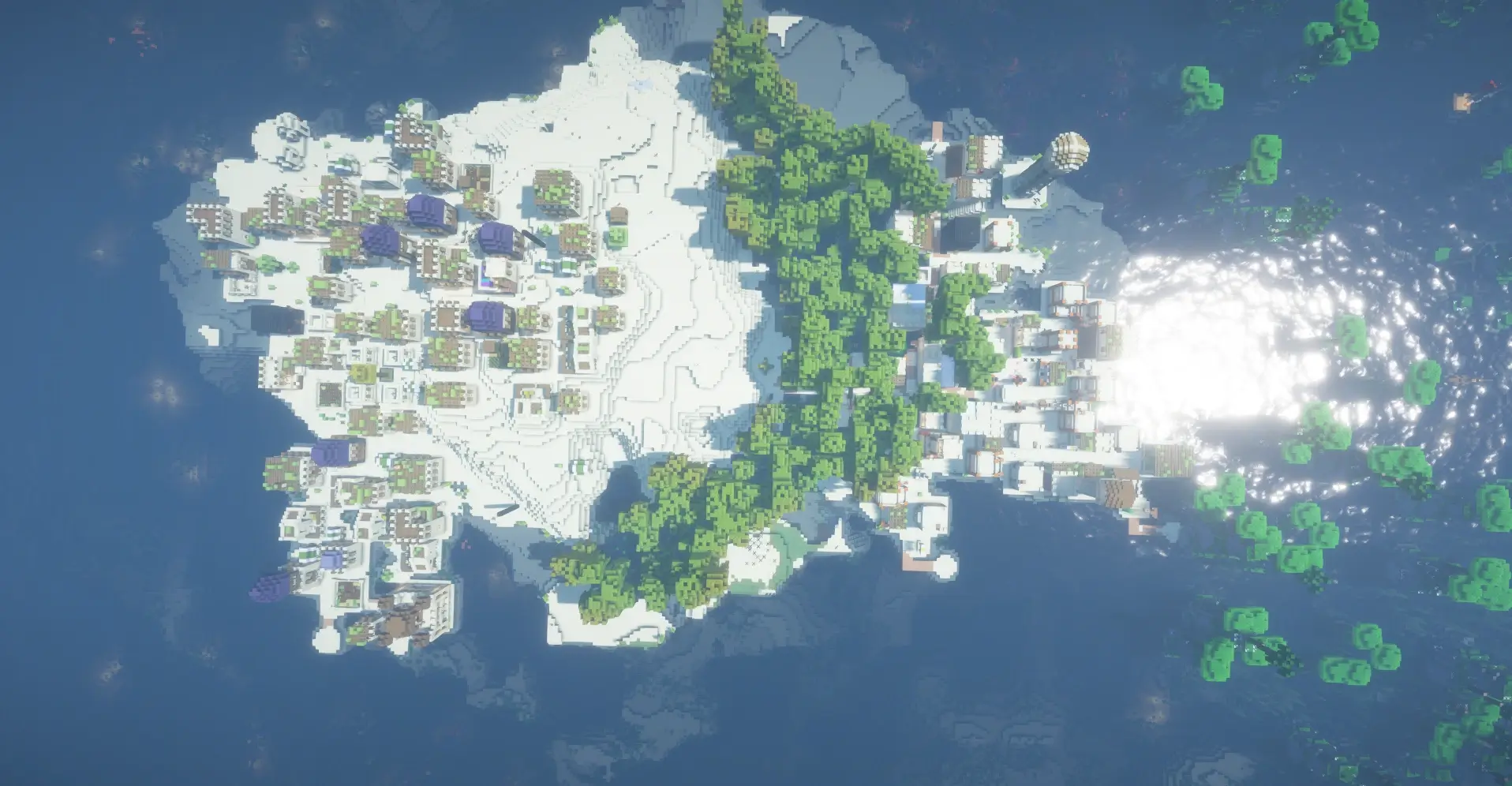 ATM10 seed with two villages on one island, ocean views, and great early-game resources.