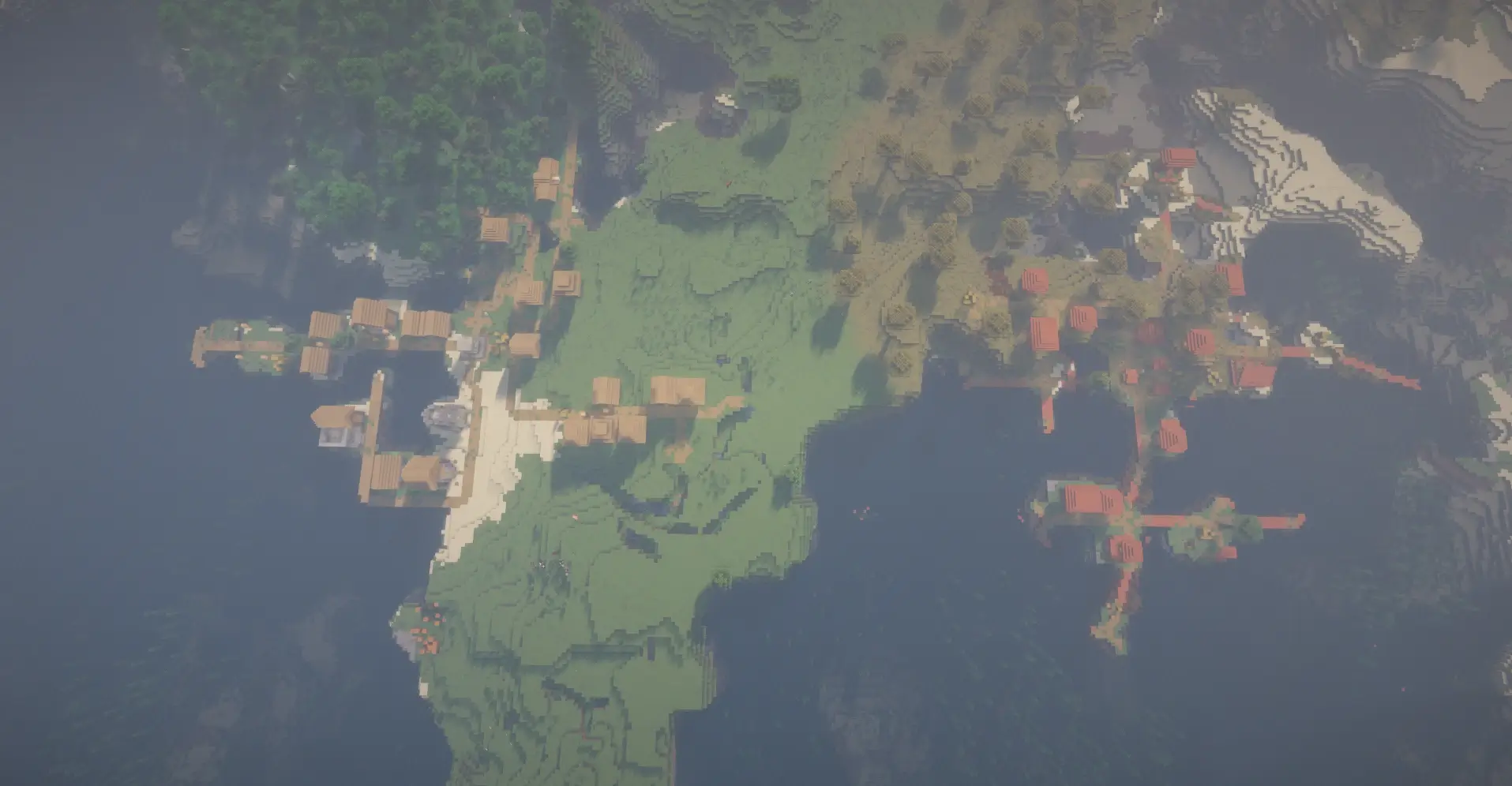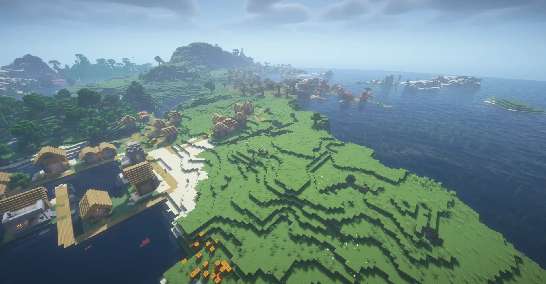 Two villages on opposite shores with ocean views—perfect for a strong survival start.
