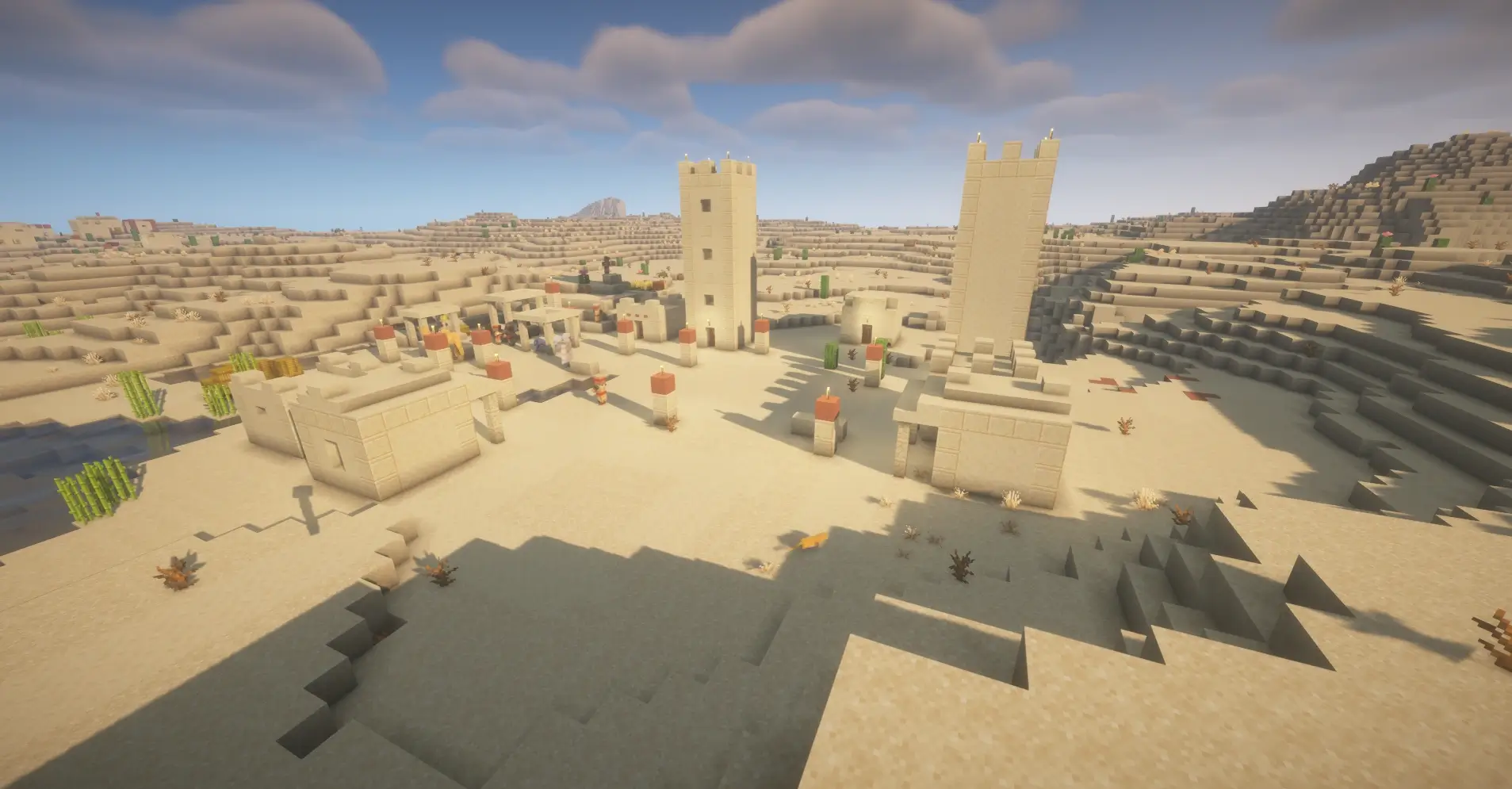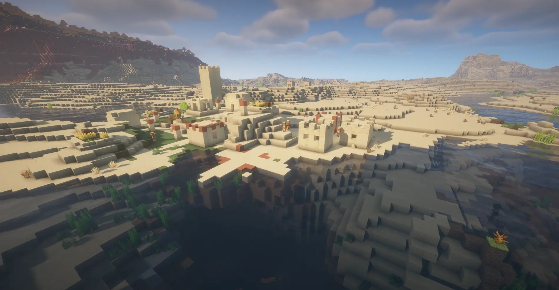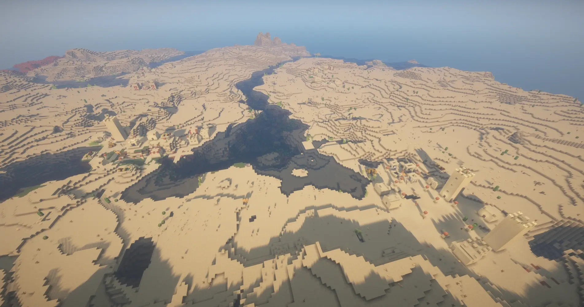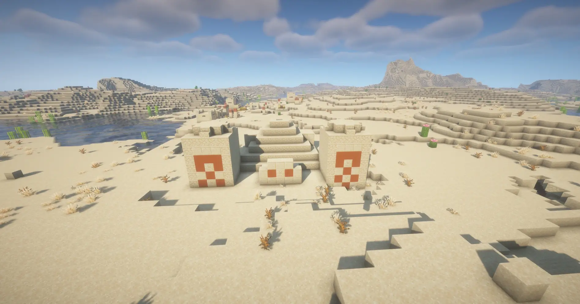 Explore a desert seed with 4 villages near spawn, great loot, trading, temples, and a strong Minecraft survival start.